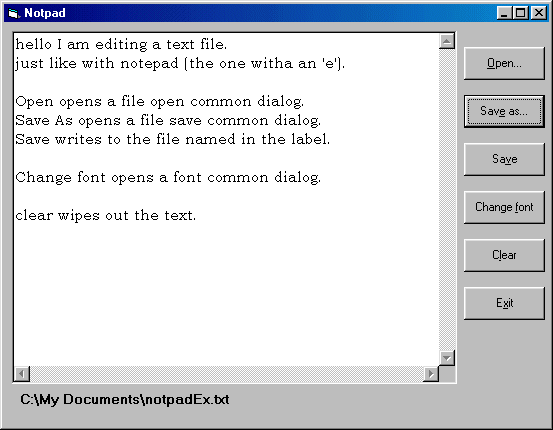 | Lab 5 | Make a form that looks like this and behaves like this. It's a "text file editor" program. | |