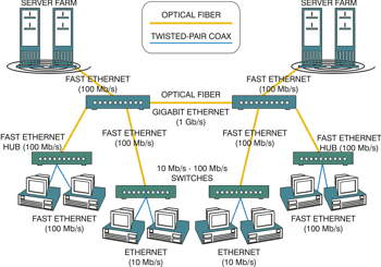 | 802.3u | 100Base-FX and -SX Fast Ethernet | 1995 | 2 strands multimode fiber | FX: 412m, 2km full duplex. SX: 300m |
