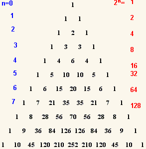 the binomial coefficients, Pascal's triangle
