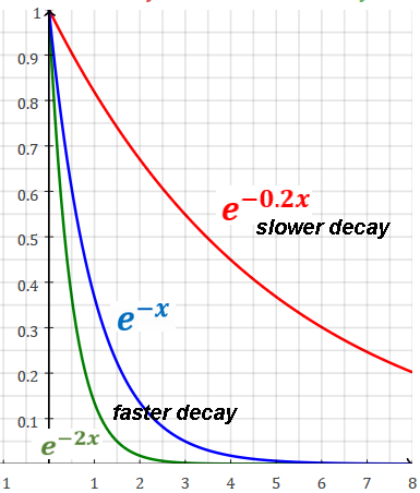 | The larger the positive coefficient k, the faster the growth. | The |larger| the negative coefficient k, the faster the decay. |
