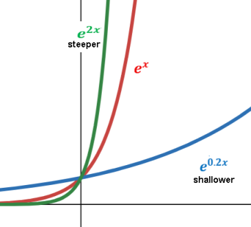 | Exponential with positive coefficient k: | Exponential with negative coefficient k: |