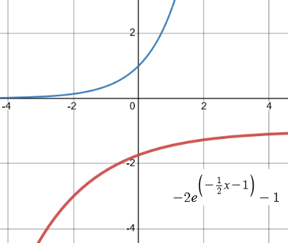 Exs. 2-x = (1/2)x decaying