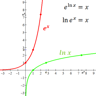ln(exp(x))=x and exp(ln(x))=x