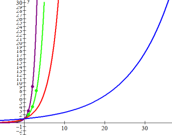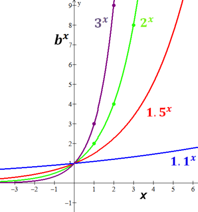 of base b>1 goes "exponential", this is the essence of exponential growth.