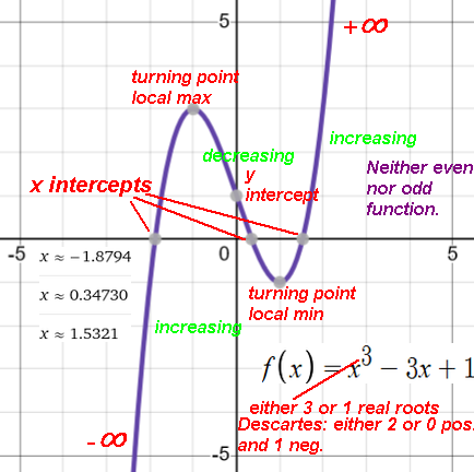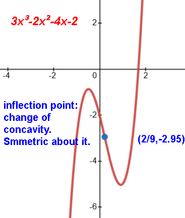 Cubic: -b/3a rotational symmetry, inflection point(some)