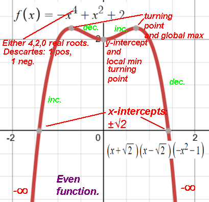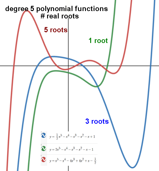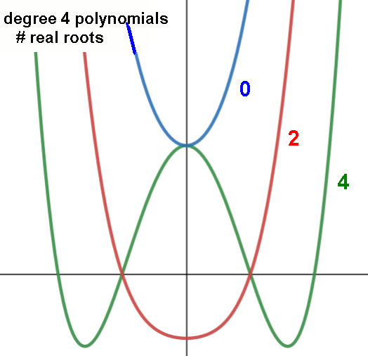 Example: a quartic polynomial ax4+... can have 0, 2, or 4 real roots/x-intercepts
