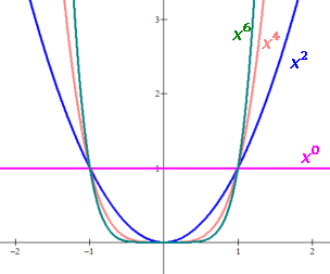 Note that the even-degreed power functions are even functions and the odd-degreed